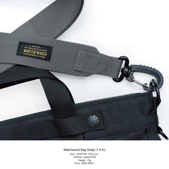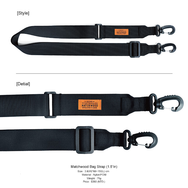 Matchwood Bag Strap (1.5"in) 1.5吋寬替換背帶 售價:380 NTD (購買千元以上包款可享加購價298元/條) 背帶寬度:3.8cm 調整範圍:89~150cm(不含扣具長度) 顏色 : 黑金/黑橘/灰色/軍綠 材質 : 尼龍 / 強化塑料勾扣 重量 : 75g 建議載重上限:8KG 產品說明: 適用於各品牌斜背包款之替換背帶